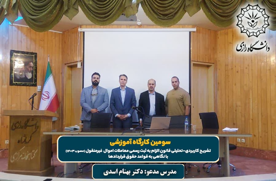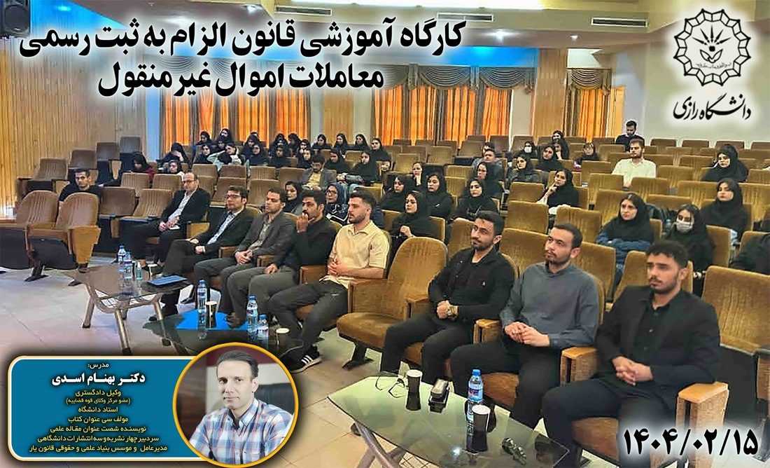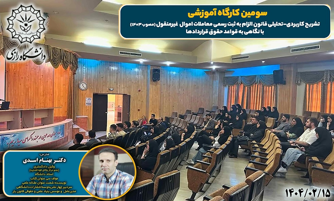 دانشگاه رازی با برگزاری کارگاه آموزشی (کاربردی-تحلیلی) قانون الزام به ثبت رسمی معاملات اموال غیرمنقول (مصوب 1403) با نگاهی به قواعد حقوق قراردادها، اهمیت تسلط بر قواعد و احکام این قانون را گوشزد کرد. مدرس مدعو این کارگاه آموزشی دکتر بهنام اسدی (وکیل دادگستری، مولف 30 عنوان کتاب و نویسنده 60 عنوان مقاله، استاد دانشگاه) بودند. این استاد در سومین کارگاه آموزشی در دانشگاه رازی، به تشریح و تدریس قانون جدیدالتصویب الزام به ثبت رسمی معاملات اموال غیرمنقول (مصوب1403) پرداخت و در پایان با پاسخ به سوالات شرکت کنندگان محترم، ختم جلسه را اعلام نمودند.