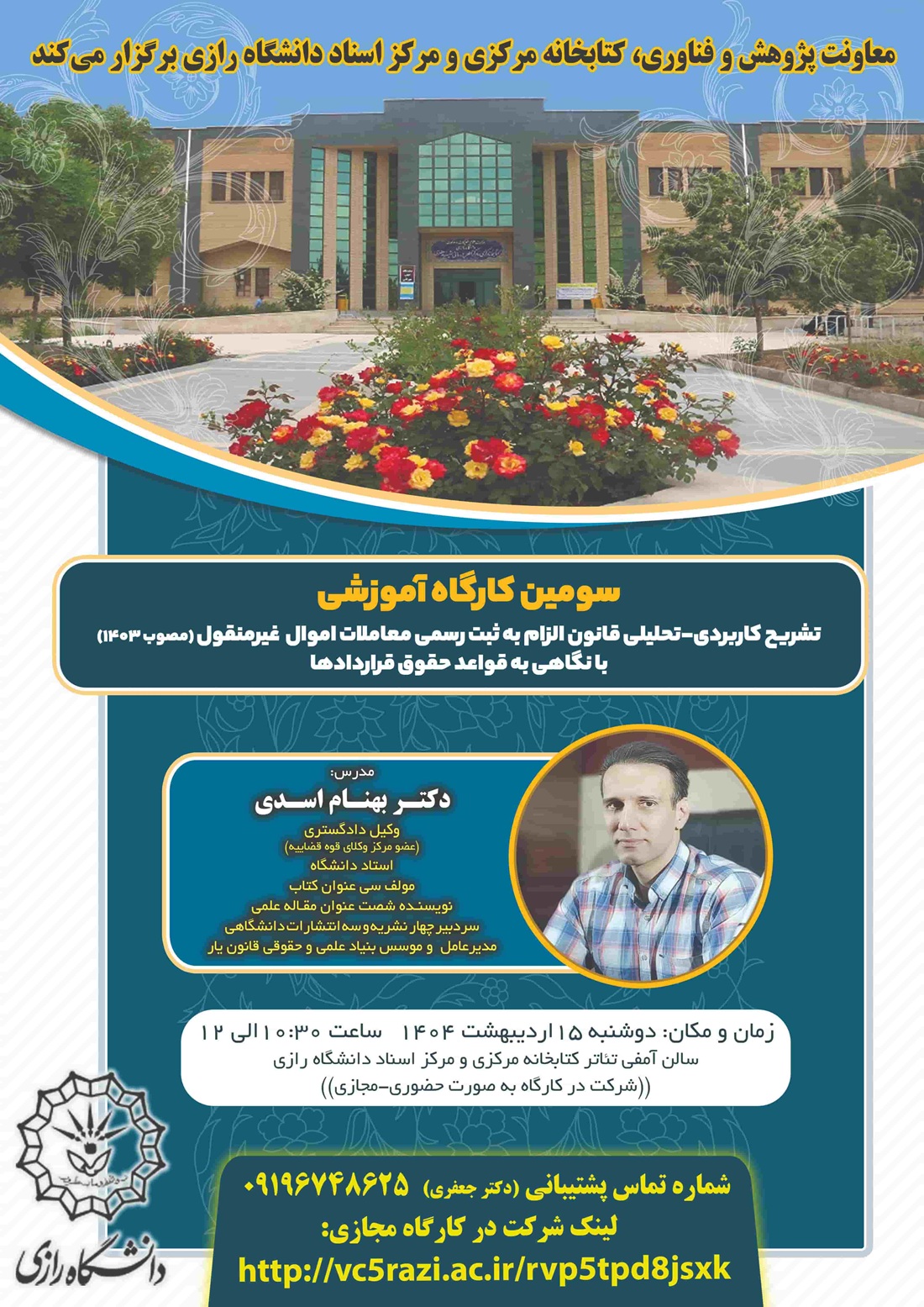 کارگاه آموزشی تشریح قانون الزام به ثبت معاملات اموال غیرمنقول1403-دانشگاه رازی-مدرس: دکتر بهنام اسدی وکیل دادگستری
